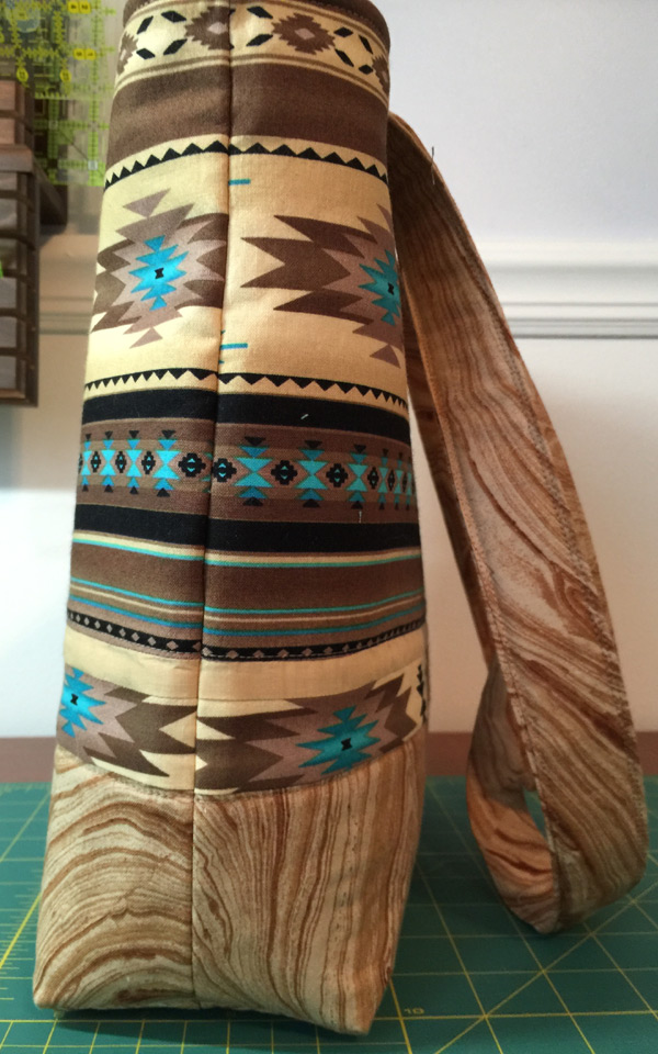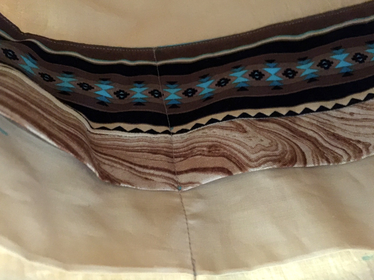 Southwest style purse tote, reminicient of the Colorado, Utah, Arizona landscape. Three coordinated high-quality prints on the outside. Inside lining is matching cream, with southwest prints as accents for the 12 pockets. Top closure is invisible magnet. Bottom is stabalized and has four metal feet.