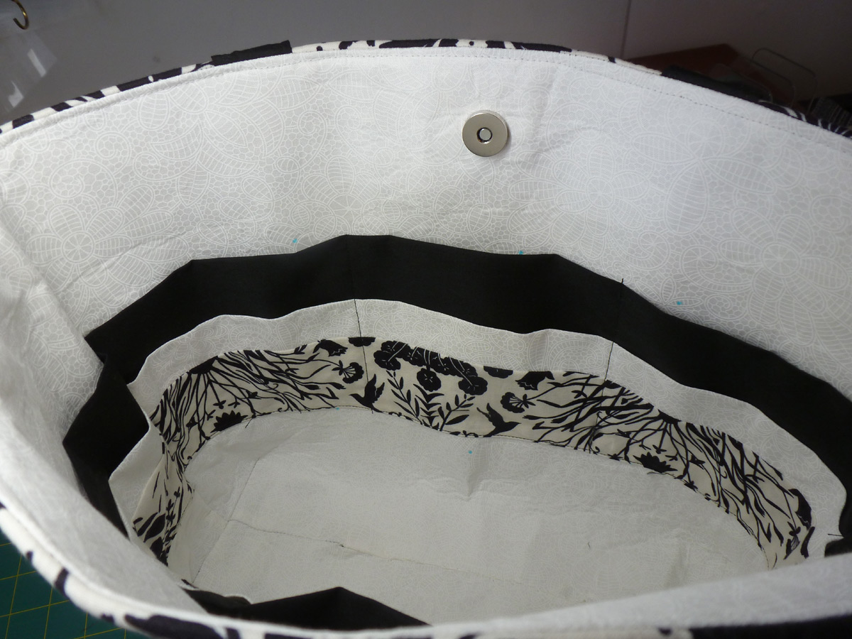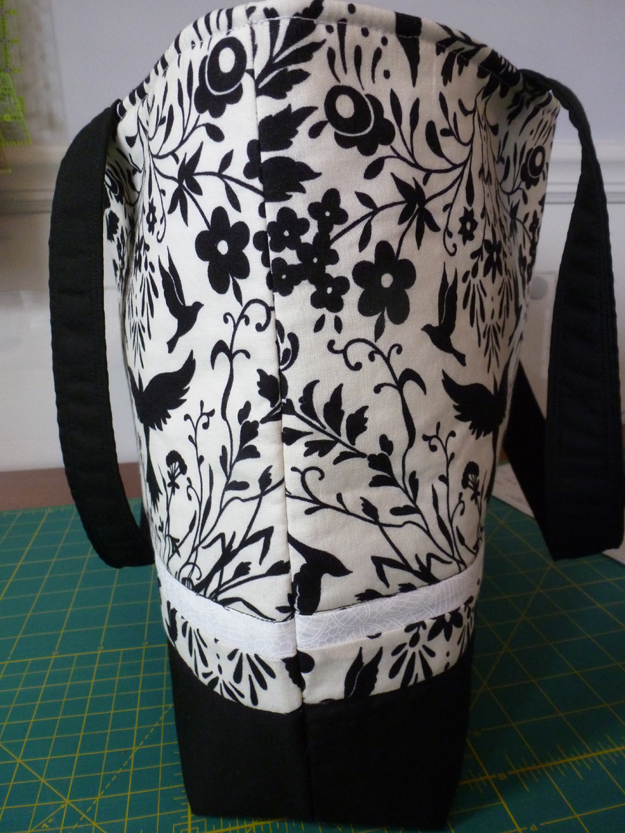 Paloma (derived from Latin “palumbus” which means Dove); is a symbol of Peace. This striking black and white bag showcases a dove in flight and flower leaf black print or of-white, accented by black bottom and 20″ straps (10″ drop), magnetic clasp, and four metal feet. Lining is a white batik with 12 pockets including the dove print and black accents.